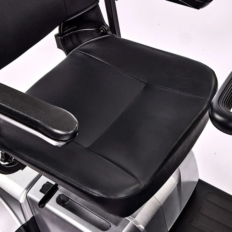 The eMove 4 Mobility Scooter is a portable and sturdy solution that combines simplicity. comfort. and strength. It is easily disassembled into manageable and lightweight parts. with the heaviest piece weighing 26.21 kg (57.75 lbs). making it easy to transport and store. Powered by a 270W motor and 38Ah SLA batteries. it delivers an impressive range of up to 26 miles (41.75 km) on a full charge. Its robust design supports users weighing up to 23.5 stone (149 kg). ensuring stability and durability. The scooter's controls are intuitive and very easy to operate. allowing smooth handling. even for those with minimal technical experience. With a comfortable padded seat and backrest. solid four-wheel construction. and 10-inch front and rear wheels. it's an ideal mobility solution for independent travel.